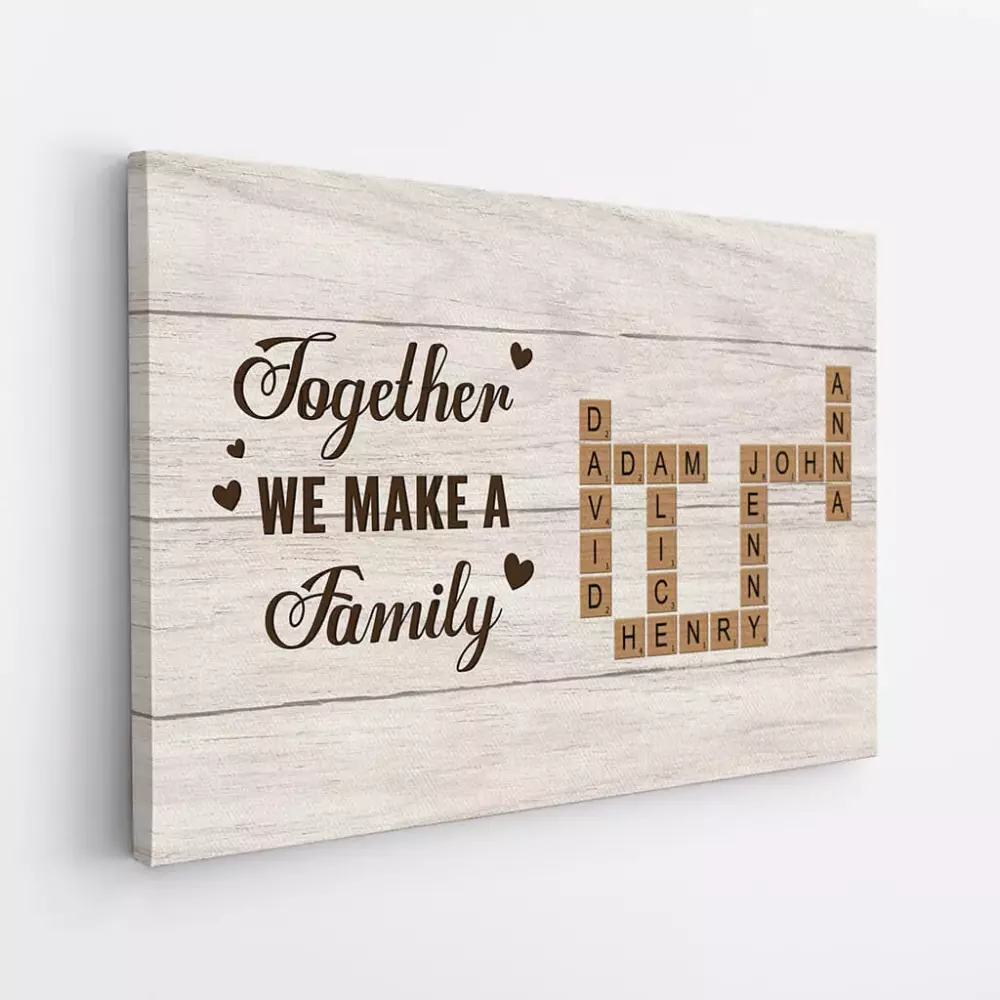 family wooden heart personalised gifts canvas for family;personalised wooden theme together we make a family canvas 1;personalised together we make a family canvas 3;when we have each other we have everything personalised gifts canvas for family 1;personalised family tree crossword canvas wall art