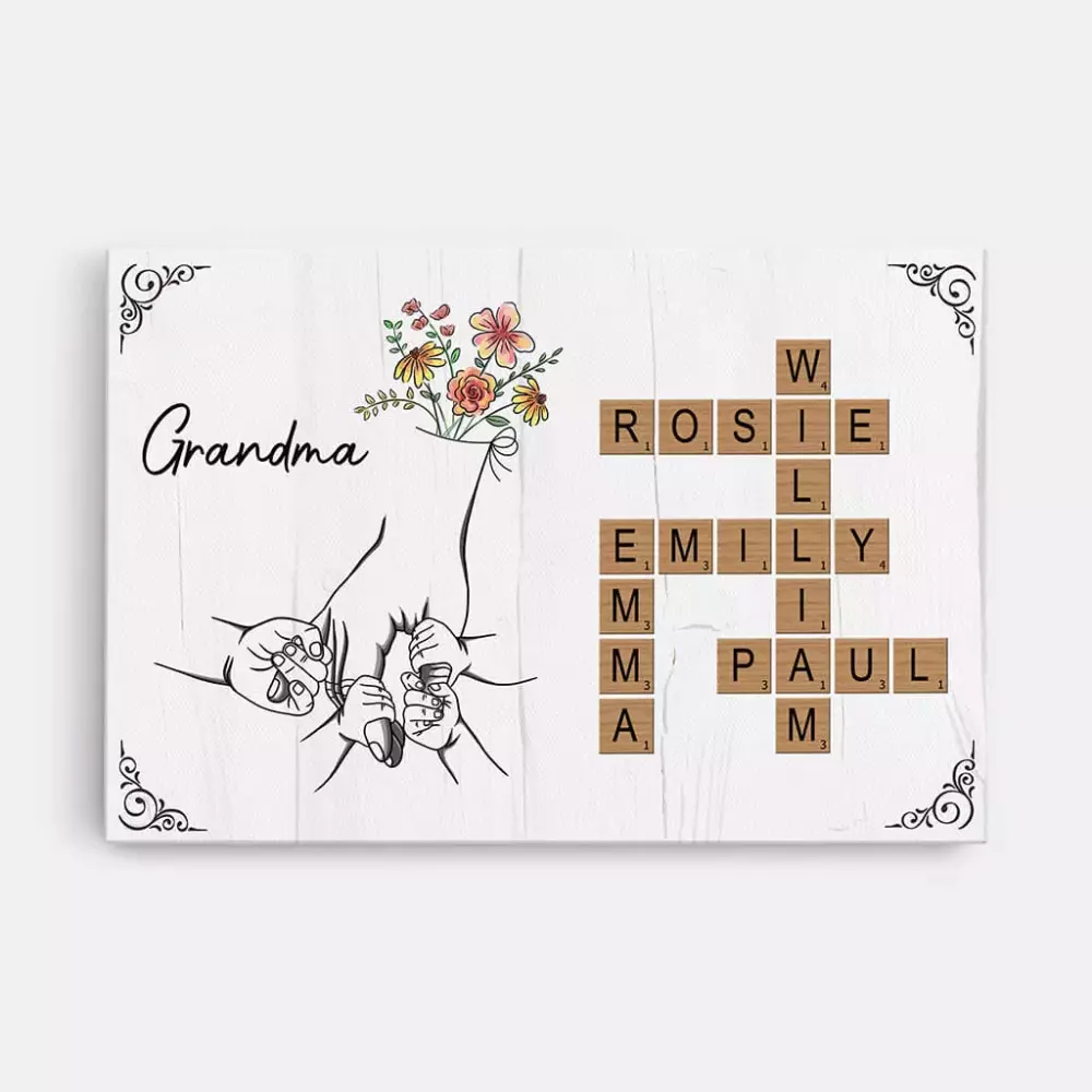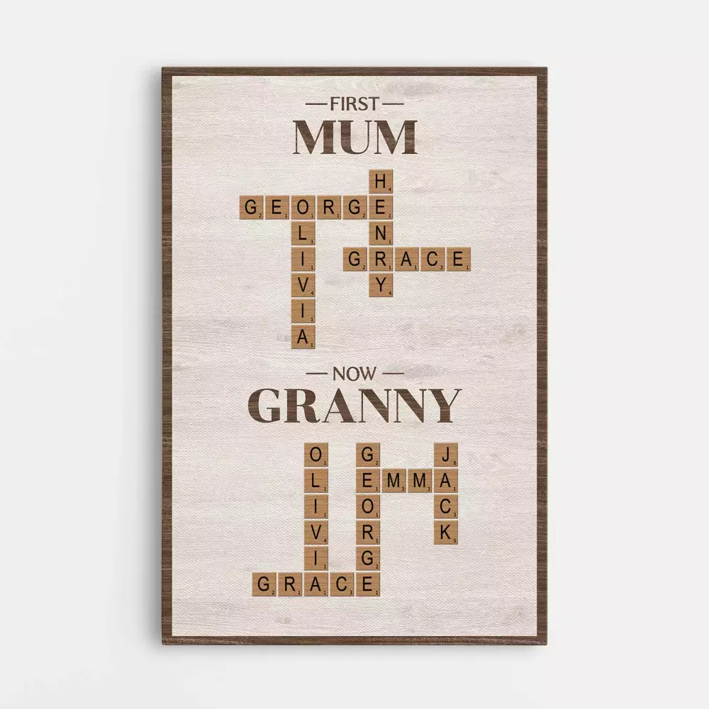 personalised dear mommy canvas 1;personalised dogue canvas for dog lovers 1;personalised retro crossword canvas for grandma;personalised dad s home run canvas;personalised first mum now grandma crossword canvas