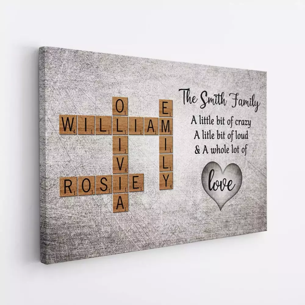 personalised family crossword art canvas print;personalised the smith family canvas 1;life is better with grandkids personalised gifts canvas for grandma grandad christmas;father children dad the man the myth the legend personalised gifts canvas for grandad dad;personalised name vintage street sign star canvas for couple