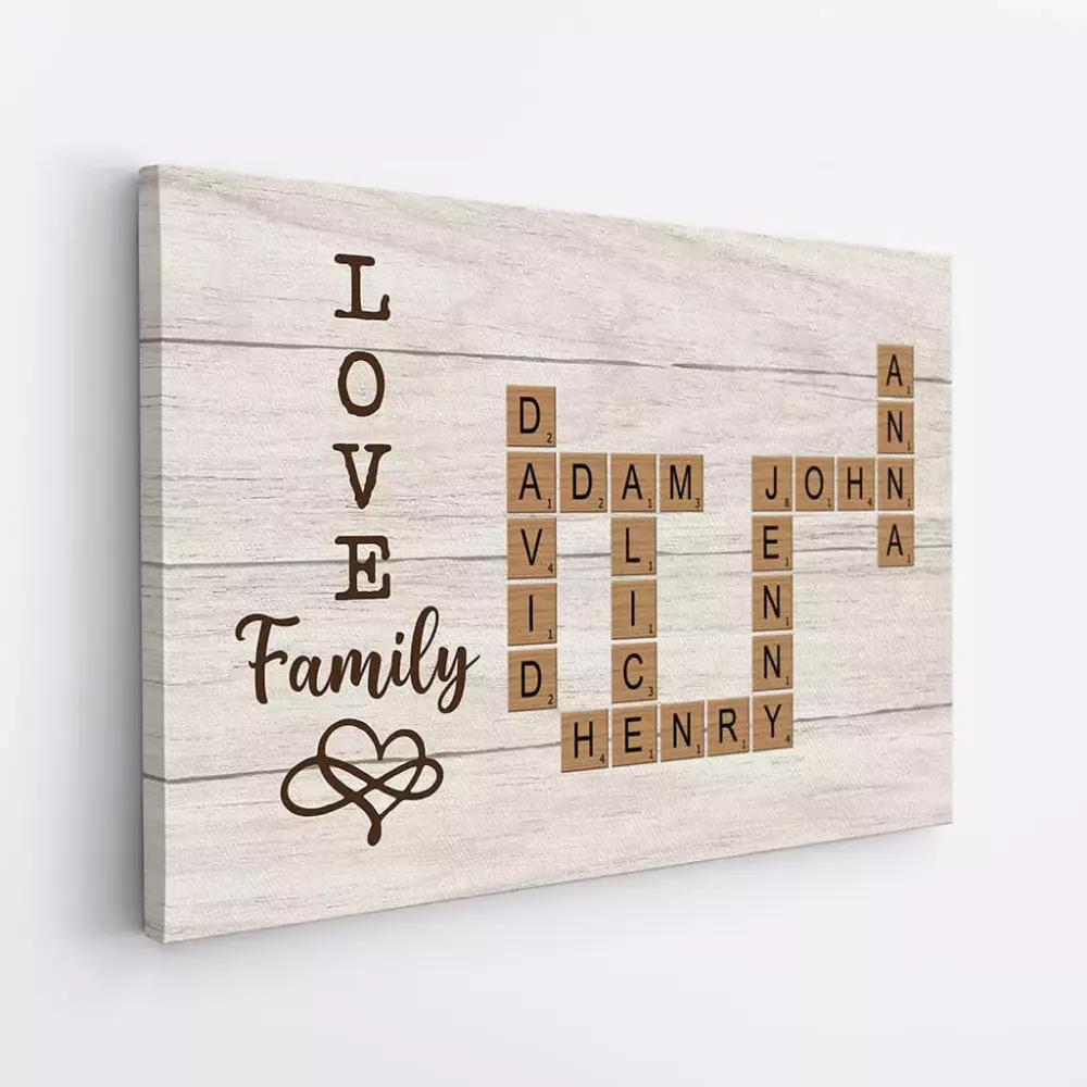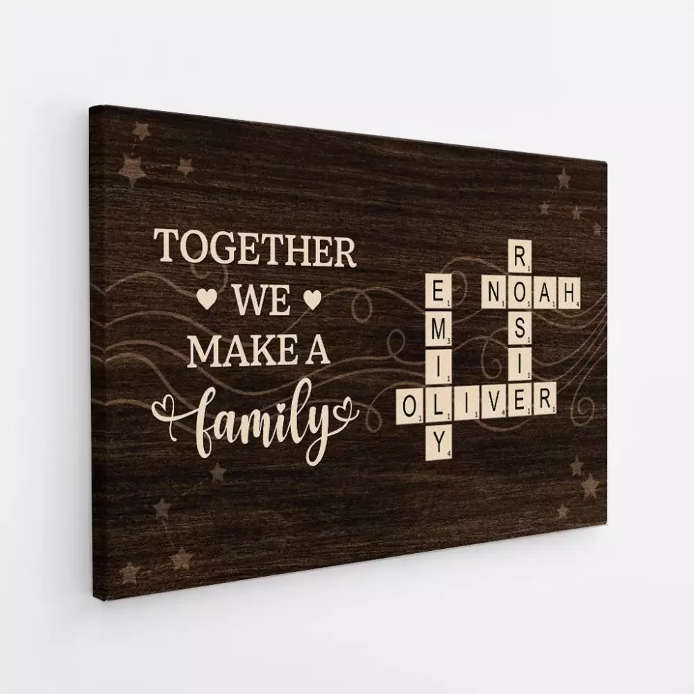 personalised i don t care about grandmother s day i love you every day canvas;personalised happy mother s day to my wife canvas 1;personalised no longer by our side but forever in our hearts canvas 1;personalised together we make a family crossword camvas wall art 1;personalised love family puzzle canvas for parents 1