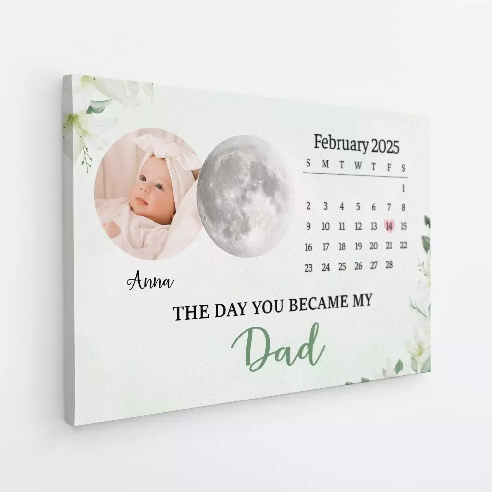 personalised the day you became our dad moon phases canvas;personalised calender and moon phases canvas with photo for mum dad 1;personalised we will always reach for you photo canvas for dad 1;personalised you will forever be my always couple photo canvas 1;personalised the day you became my beloved grandma calendar photo canvas print