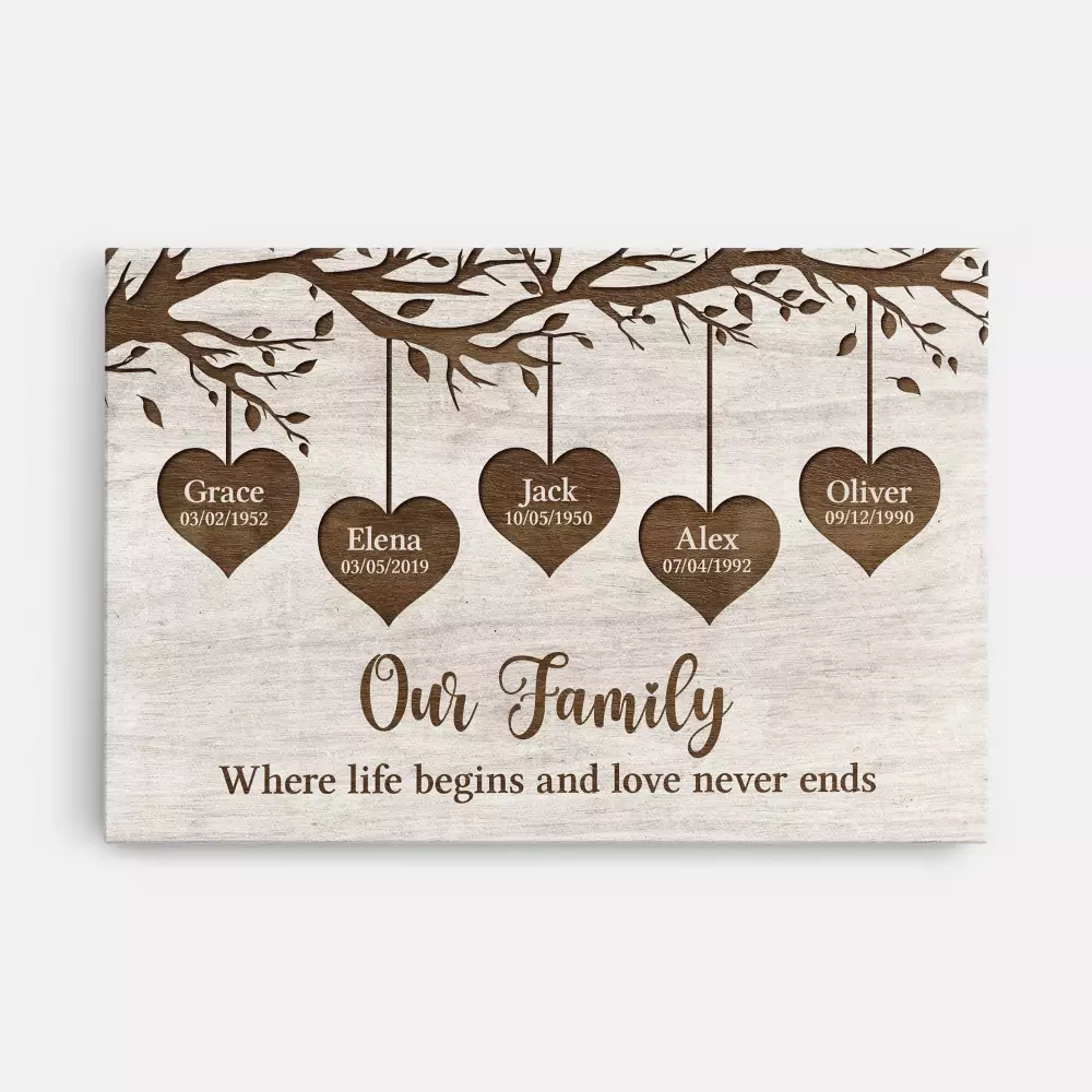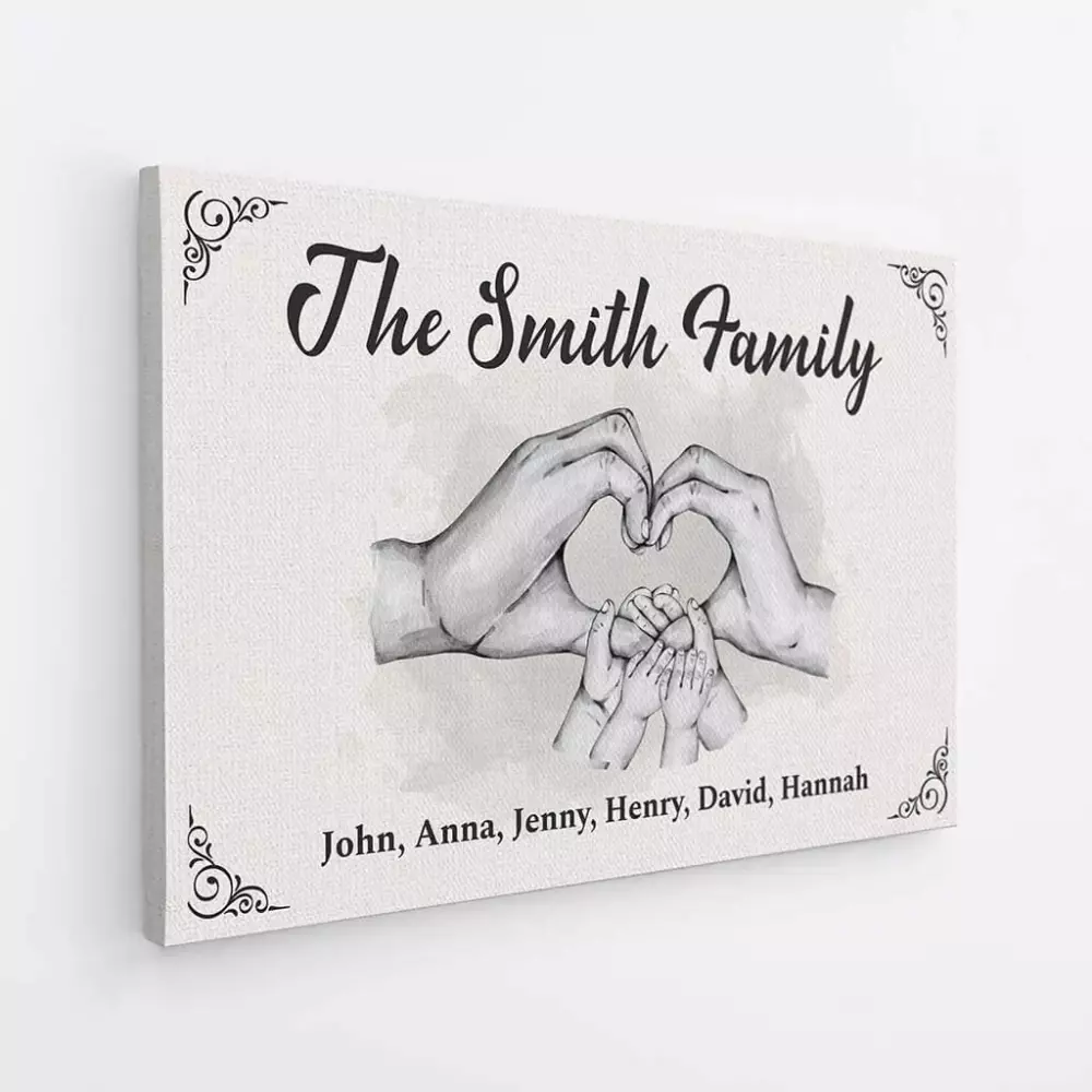 personalised there is no greater gift than the love shared by a family canvas 1;personalised family heart holding hands canvas 1;personalised greatest gifts of family s love canvas;personalised family where life begins and love never ends canvas;personalised family canvas with crossword puzzle art 1